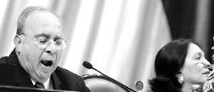 Arriba, el presidente la de mesa directiva de la Cámara de Diputados, Juan de Dios Castro, y la perredista Amalia García. Abajo, al centro, aparece el priísta Francisco Rojas, señalado como uno de quienes modificaron el dictamen de la Comisión de Presupuesto, con asesoría de Hacienda FOTOS JESUS VILLASECA
