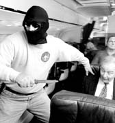 En la imagen, del 26 de septiembre de 2001, integrantes de la Agencia Federal de Aviación estadunidense simulan el ataque de un grupo de aerosecuestradores FOTO REUTERS