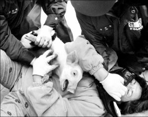 ALTERMUNDISTAS COREANOS  Policías surcoreanos detienen a un manifestante durante las protestas en contra del Tratado de Libre Comercio entre Corea del Sur y Chile. Miles de campesinos rechazaron el acuerdo frente al Parlamento FOTO REUTERS