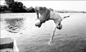 CHAPUZON EN PANTEPEC, PUEBLA  Un lanchero se da un descanso para gozar las aguas del río FOTO JUAN PABLO ZAMORA/CUARTOSCURO