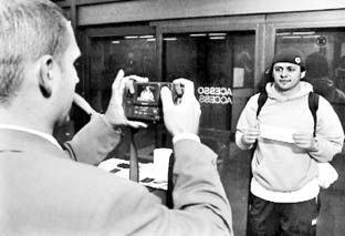Autoridades migratorias brasileñas fotografían y toman huellas digitales a un ciudadano estadunidense en el aeropuerto de Sao Paulo, después que un juez autorizó la medida en "reciprocidad" a la práctica que Washington anunció para este lunes, en el contexto de la campaña contra el terrorismo. El Departamento de Estado estadunidense aceptó que Brasil, de forma soberana, tiene derecho a aplicar ese ordenamiento FOTO REUTERS /AGENCIA GLOBO
