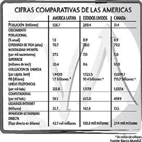 Latina en lo económico son "avanzar con el ALCA y reforzar el cobro