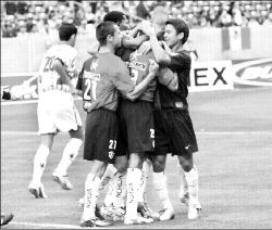 Al minuto ocho y después de haber desperdiciado una oportunidad de gol, penetró al área azulgrana Carlos María Morales, quien fue frenado por el portero Rafael Cuevas, por lo que el silbante Terry Vaughn marcó bien la pena máxima, misma que concretó Manuel Pérez.