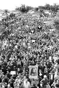 Unos 100 mil iraquíes chiítas marcharon en Bagdad en apoyo a la demanda del ayatola Alí Sustani de que se convoque lo antes posible a comicios directos y en rechazo a la designación de una asamblea provisional FOTO AFP