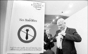 Un participante en el Foro Económico Mundial tiene que quitarse la corbata en la entrada del centro de congresos en Davos FOTO REUTERS