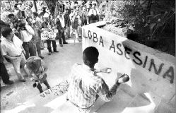 pintas en protesta por la violencia ocurrida en la entidad este miércoles.