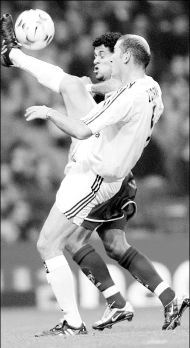 el extremo portugués Luis Figo se tuvo que retirar por un golpe