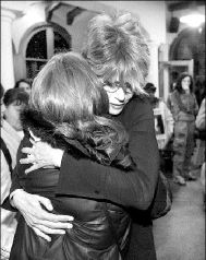 La actriz estadunidense Jane Fonda abraza a familiar de una de las víctimas de la violencia contra las mujeres, ayer en la ciudad fronteriza FOTO AFP /JORGE UZON