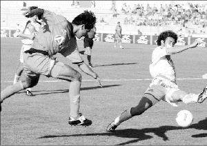 Los camoteros se descontrolaron y no atinaban a acomodarse en la cancha ni a acercarse con peligro a la meta del Gato Ortiz; al contrario, Jaguares tuvo varios acercamientos hasta que Sebastián Pereira, Didí, demostró su calidad al desviar el balón con el talón derecho después de un centro de Salvador Cabañas, quien desbordó por la derecha.