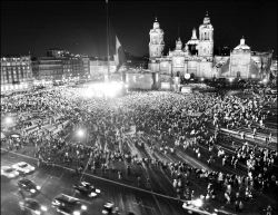 A las ocho se anunció el comienzo. Ocho y tres minutos: una marea humana, una gran ola, inercia proveniente desde las esquinas de las calles que conforman el Zócalo, apretó fuerte a los de más adelante. Ocho con cuatro minutos: salieron chispados los primeros, en medio de sofocaciones. Los ayes se escuchaban y la angustia aumentaba. Los ojos de varios se vovieron saltones.