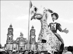 En un mitin realizado en la Plaza de la Constitución, que se organizó después de marchar a diferentes dependencias, los maestros exigieron la democratización del Sindicato Nacional de Trabajadores de la Educación (SNTE) y manifestaron su repudio a la celebración de un congreso de reforma estatutaria, porque -dijeron- se propone la relección del actual secretario general, Rafael Ochoa, y "dar marcha atrás" a conquistas laborales de los maestros.