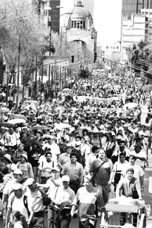 Miles de integrantes de la CNTE y del SME se manifestaron contra los planes de abrir a la iniciativa privada los sectores energético y educativo, así como la seguridad social. En el acto acusaron a Elba Esther Gordillo de ser una de principales promotoras de la privatización FOTO CRISTINA RODRIGUEZ