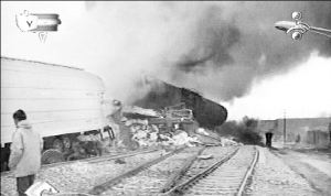 ESTALLA UN TREN CON QUIMICOS EN IRAN; 295 MUERTOS  Un reguero de cadáveres en varios metros a la redonda dejó el descarrilamiento e incendio del vehículo de carga que transportaba azufre, gasolina y fertilizantes químicos, el cual explotó cerca de la ciudad de Neyshabur, provincia de Khorasan. La onda expansiva afectó a cinco poblados vecinos. La catástrofe se originó cuando el tren comenzó a movilizarse sin motivo aparente de una estación en la que estaba estacionado FOTO AFP