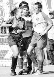 Virginia Tovar se convirtió ayer en la primera mujer que dirige un partido de primera división del futbol mexicano, en el cotejo que ganó Irapuato 2-1 al América. Su labor fue aceptable, expulsó a dos jugadores y marcó un penal. Casi al final, Cuauhtémoc Blanco le reclamó de forma airada y le gritó "no me toques" cuando la silbante le pidió que se calmara FOTO AFP