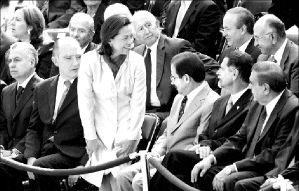 Rafael Macedo de la Concha, Fernando Canales, Josefina Vázquez Mota, Carlos Abascal, Javier Usabiaga, Luis Pazos y Luis H. Alvarez, entre otros, en el acto de ayer en la Rotonda de las Personas Ilustres, donde fueron colocados los restos de Manuel Gómez Morín, fundador del PAN FOTO JOSE CARLO GONZALEZ