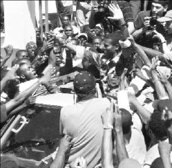 Puerto Principe, 1º de marzo. Los rebeldes del Frente del Norte, dirigidos por Guy Philippe y Joel Chamblin, incursionaron este lunes en la capital en medio del entusiasmo popular. Su entrada, explicó Ravix Remysynthe, uno de sus dirigentes, tiene como objetivo "garantizar la seguridad de la población". Se proponen, en efecto, "recuperar las armas de las pandillas y tomar, junto con la policía, todas las disposiciones para controlar a los chimeres (seguidores armados de Aristide). Es un esfuerzo por dar un respiro a la población".