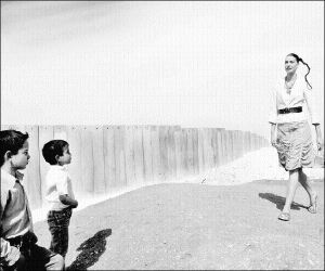 La casa de modas israelí Comme-il-faut organizó un desfile a un lado del polémico muro de separación que construye el gobierno del primer ministro de Israel, Ariel Sharon, con el propósito de evitar la entrada de suicidas palestinos en su territorio. La valla, construida en Cisjordania y alrededor de Jerusalén, llega a tener 8 metros de altura en algunas partes. La intención de esa pasarela fue alentar a las mujeres palestinas e israelíes a trabajar por la paz. El desfile, que sirvió además para el catálogo de la colección de verano de esa casa de modas, se efectuó en el lado de Jerusalén con modelos de Eslovenia, Rusia, Polonia, Francia e Israel. En la imagen, un par de niños palestinos observan a una de las participantes en ese acto contra la barbarie FOTO REUTERS