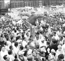 La movilización convocada inicialmente por el Frente Unico y la Coordinadora de Jubilados y Pensionados del IMSS se convirtió en el acto de protesta de médicos, enfermeras, trabajadores administrativos, camilleros y personal de ambulancias de clínicas y hospitales de la zona metropolitana de la ciudad de México y algunos estados de la República, quienes se deslindaron de la marcha convocada también ayer por la Unión Nacional de Trabajadores, "porque allá están de acuerdo con la reforma".