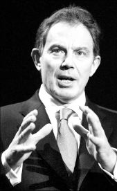 primer ministro Tony Blair en Irak, al tiempo que éste defendía