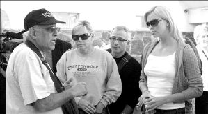 CHARLIZE THERON, EN UNA CARCEL DE SUDAFRICA  La actriz ganadora del Oscar, Charlize Theron (derecha), y su madre Gerda (centro), escuchan las palabras del prisionero político Ahmed Kathrada (izquierda), en los patios de la cárcel de la isla Robben, donde el ex presidente sudafricano Nelson Mandela estuvo encarcelado. Theron y su madre visitaron este viernes la isla y el penal como parte de su gira por el país africano FOTO AFP