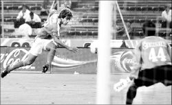 puesto que el balón le había quedado atrás, entonces