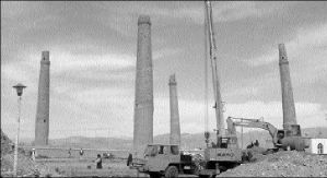 ALMINARES EN RIESGO  Con 500 años de antigüedad, cinco alminares en Herat, provincia occidental de Afganistán, soportaron terremotos, bombardeos y los implacables vientos de la zona, pero ahora corren el peligro de sucumbir debido a la construcción de un edificio en medio del conjunto, situación que ha alarmado a los arqueólogos. Los alminares son torres desde las que el imán convoca a los musulmanes a la oración FOTO AFP