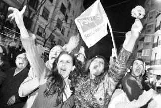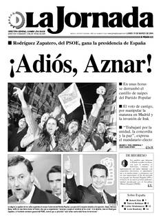 La alegría se apoderó de las calles españolas al conocer la derrota del Partido Popular, que pasó de la mayoría absoluta a la oposición. Abajo, Mariano Rajoy, delfín de José María Aznar (al fondo), dijo que su organización "reconoce y acepta el veredicto de las urnas". A la derecha, José Luis Rodríguez Zapatero, el triunfante secretario general del PSOE, sostuvo que su prioridad "será luchar contra toda forma de terrorismo" FOTOS AFP Y REUTERS