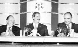 El dirigente de la Concamin, León Halkin Bider, afirmó por su parte que el compromiso es retomar el rumbo de crecimiento y empleo. Para ello propuso una alianza entre el gobierno, los partidos políticos y los sectores productivos. Una alianza, recalcó, que no sea de fotografía, sino de trabajo coordinado, de responsabilidades, de aportaciones, de compromisos y resultados.