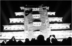 Tajin, Ver., 18 de marzo. Los espíritus de los dioses totonacas se materializaron como humanos que deambularon la noche del miércoles en la zona arqueológica del Tajín, luego de la presentación del tan controvertido espectáculo multimedia Luz y voces del Tajín, que narra la erupción, crecimiento y desaparición de la cultura del rayo y las tormentas, la totonaca, y que da el banderazo inicial a las actividades de la Cumbre Tajín 2004, donde hasta este día no se había presentado ninguna de las protestas anunciadas por miembros del Instituto Nacional de Antropología e Historia (INAH).
