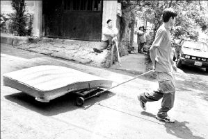 PEQUEÑO EMPRESARIO  Un joven traslada en un carrito un colchón viejo para venderlo en un tianguis de usado en una calle de la colonia Santo Domingo, en Coyoacán FOTO ALFREDO DOMINGUEZ