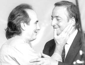 El cantautor español Joan Manuel Serrat y el presidente argentino Néstor Kirchner durante el acto en el que la ex Escuela de Mecánica de la Armada, el mayor centro de exterminio de la dictadura, fue transformada en el Museo de la Memoria. "Como mandatario vengo a pedir perdón del Estado por la vergüenza de haber callado durante 20 años de democracia tantas atrocidades." El acto causó gran malestar entre las fuerzas armadas FOTO AFP