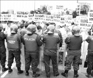 Granaderos de la Secretaría de Seguridad Pública capitalina impidieron a integrantes de la Revolución Blanca llegar a Los Pinos para demandar mejores condiciones económicas a pensionados y jubilados FOTO FRANCISCO OLVERA