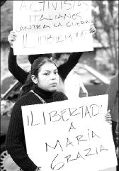 MITIN EN LA EMBAJADA DE ITALIA  Activistas contra la guerra realizaron ayer un mitin frente a la embajada de Italia en México para exigir la libertad de los presos políticos que están recluidos en ese país. Plantearon que su único delito ha sido oponerse a la política que lleva a cabo su gobierno FOTO CRISTINA RODRIGUEZ