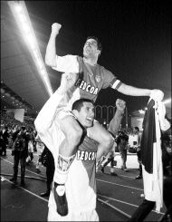 La segunda mitad cambió radicalmente. Al minuto 48 el Mónaco se metió definitivamente en la eliminatoria, gracias a un gol espectacular del español Fernando Morientes, cedido este año por Real Madrid al equipo francés, quien remató con la cabeza un balón "caído del cielo".