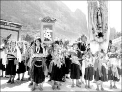 ACTIVIDADES RELIGIOSAS EN CHIAPAS  Mujeres de la comunidad de Acteal cargan a la Virgen de la Masacre antes de llevarse a cabo la procesión por calles de Chenalhó. El recorrido marca el inicio formal de la Semana Santa en la comunidades indígenas de los Altos de Chiapas FOTO VICTOR CAMACHO