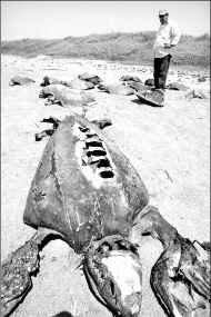de la matanza de centenas de tortugas en este sitio; aún hay restos