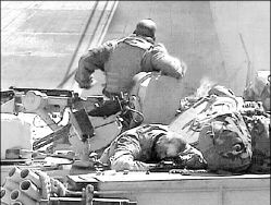 Un convoy estadunidense fue atacado en una autopista a la altura de Abu Gharib, 20 kilómetros al oeste de Bagdad, y guerrilleros iraquíes armados con kalashnikov bailaban alrededor de dos vehículos en llamas, sin que se reportaran militares muertos o heridos.