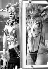 MININAS  Contrariando la hipótesis de Cabrera Infante de que los u-cranianos tienen el cráneo en forma de ''u", estas modelos nativas de Ucrania entablaron metamorfosis en el concurso anual de body-art, titulado ''Cuando me convierta en gato", realizado este viernes en Kiev FOTO AFP