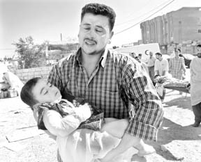 Un iraquí lleva a su hijo y a su madre (a la derecha, al fondo) a un hospital tras ser heridos por el bombardeo estadunidense en esa ciudad. La televisora Al Jazeera informó, según fuentes de salud locales, de mil 500 lesionados en una semana de enfrentamientos con las tropas de ocupación; los combates continuaban en otras ciudades. El presidente George W. Bush minimizó el informe de inteligencia previo al 11-S, al afirmar que "no decía nada de un ataque a Estados Unidos. Hablaba de intenciones y de que alguien nos odiaba" FOTO REUTERS