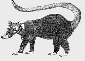 FRANCISCO HERNANDEZ (1575) Historia natural de Nueva España. Registra: ''...con hocico largo, delgado y remangado, cola larga también, largo pelo que es blanco en el vientre y en las demas partes pardo, oscuro o blanco, pero más negro en el dorso, pies negros y uñas corvas. Se domestica fácilmente; es voraz y come cuantos alimentos se le ofrecen, y sin embargo su carne no se come. Es animal apacible que halaga y juguetea de mil maneras, pero ataca a los extraños. Parece ser una especie de tejón, por lo que comúnmente lo llaman así los españoles que aquí residen..." Actualmente se le conoce en diferentes partes de la República Mexicana como coatí o choluga.