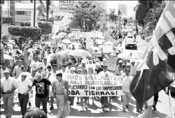 Acapulco, Gro., 20 de abril. Cientos de ejidatarios de El Podrido, apoyados por un contingente de San Salvador Atenco, estado de México, marcharon hoy por la costera Miguel Alemán para exigir el cese del hostigamiento de la Procuraduría General de la República (PGR) contra dirigentes ejidales de Acapulco, a quienes les ha girado órdenes de captura por el delito de despojo.