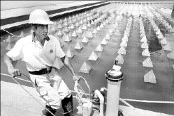 Labores de mantenimiento a la fuente de la Plaza Juárez