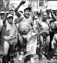 En paralelo, medio centenar de ex trabajadores del sector pesquero ocupó durante horas un local de Naciones Unidas en Li-ma, donde antes de ser desalojados por la policía pidieron, en calzoncillos, la mediación del organismo mundial para que el gobierno cumpla promesas de un añejo conflicto de 1992.
