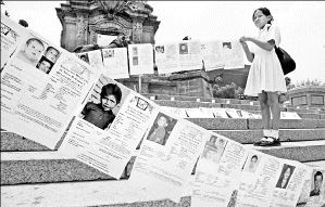 PIDEN QUE VUELVAN  Rosa Jiménez, hermana de un menor secuestrado, participa en una manifestación organizada por una agrupación en defensa de niños desaparecidos, en el Angel de la Independencia, ayer FOTO AFP /JORGE UZON