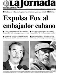 El cúmulo de desencuentros habidos entre los gobiernos de Vicente Fox y Fidel Castro tuvo ayer un episodio más, cuando el mandatario mexicano dispuso el retiro de la embajadora en La Habana, Roberta Lajous, y las expulsiones del embajador Jorge Bolaños y el ministro consejero para Asuntos Políticos, Orlando Silva. Hasta el momento, el gobierno isleño ha guardado silencio sobre esa determinación FOTOS LUIS HUMBERTO GONZALEZ Y REUTERS