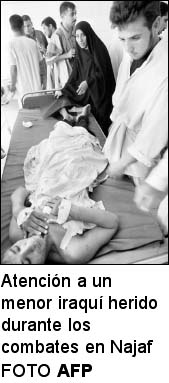 a fondo en Kufa, vecina de Najaf. Las fuerzas de ocupación están
