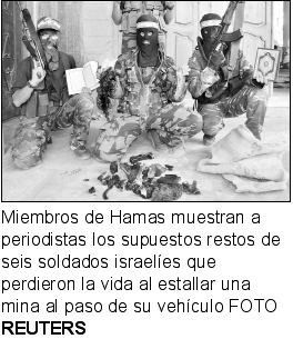afirmaron tener los restos de los soldados israelíes -cuya devolución