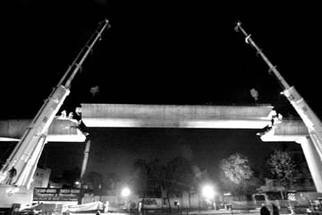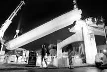 Con una inversión de 800 millones de pesos, el Gobierno del Distrito Federal construye la primera etapa del segundo piso del Periférico -que va de San Antonio a Las Flores-, cuya entrega, programada para finales de mes, se pospuso ante los retrasos en la colocación de trabes y la edificación de una rampa de acceso en la calle de Chilpa. Se espera concluir en diciembre la segunda etapa, que va hacia San Jerónimo FOTOS JOSE CARLO GONZALEZ