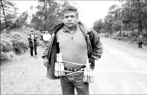ZACAPELA EN XALATLACO; 12 HERIDOS Y OCHO DETENIDOS  Comuneros mexiquenses se enfrentaron con integrantes de la Secretaría de Seguridad Pública del Distrito Federal y de la Policía Federal Preventiva tras exigir, y amenazar con detonar cargas de dinamita, que los cuerpos policiacos se retiraran del predio Agua Grande. Los labriegos derribaron árboles para bloquear la carretera que une a ese municipio con el Ajusco FOTO AGENCIA MTV/ MARIO VAZQUEZ DE LA TORRE