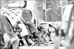 AVERIA  Trabajadores que laboran en las obras de remozamiento de Paseo de la Reforma empujan un vehículo que se descompuso en plena avenida, con el consecuente trastorno vial FOTO LUIS HUMBERTO GONZALEZ